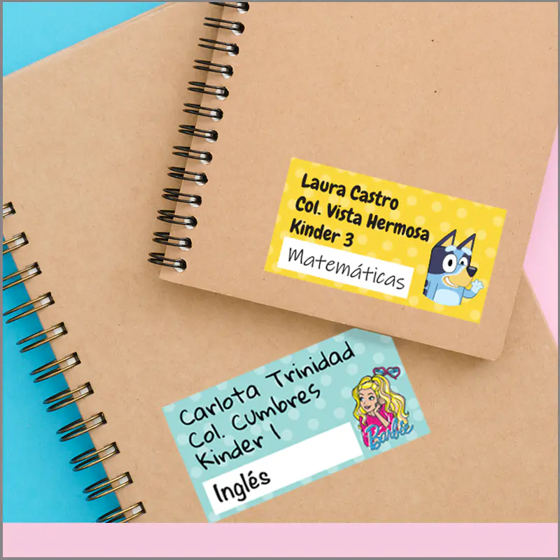 Diseña las pegalinas de cuadernos con los colores y patrones que más le gusten a tus hij@s para que queden súper personalizadas! Recuerda aplicarlas en superficies lisas y limpias para mejores resultados.